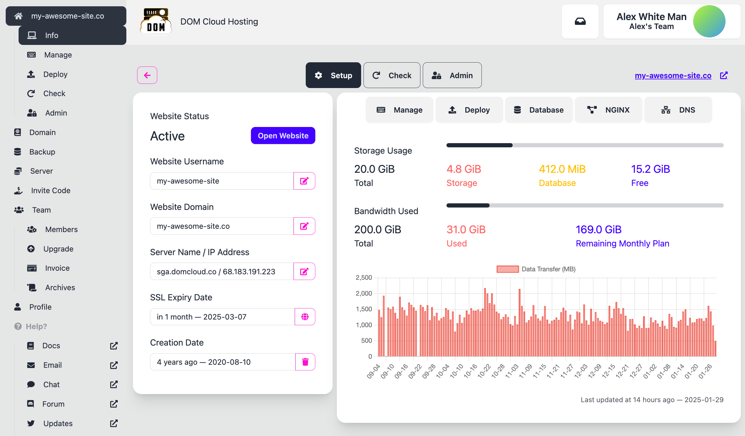 Use our web-based File Manager, Database Explorer and SSH Terminal.