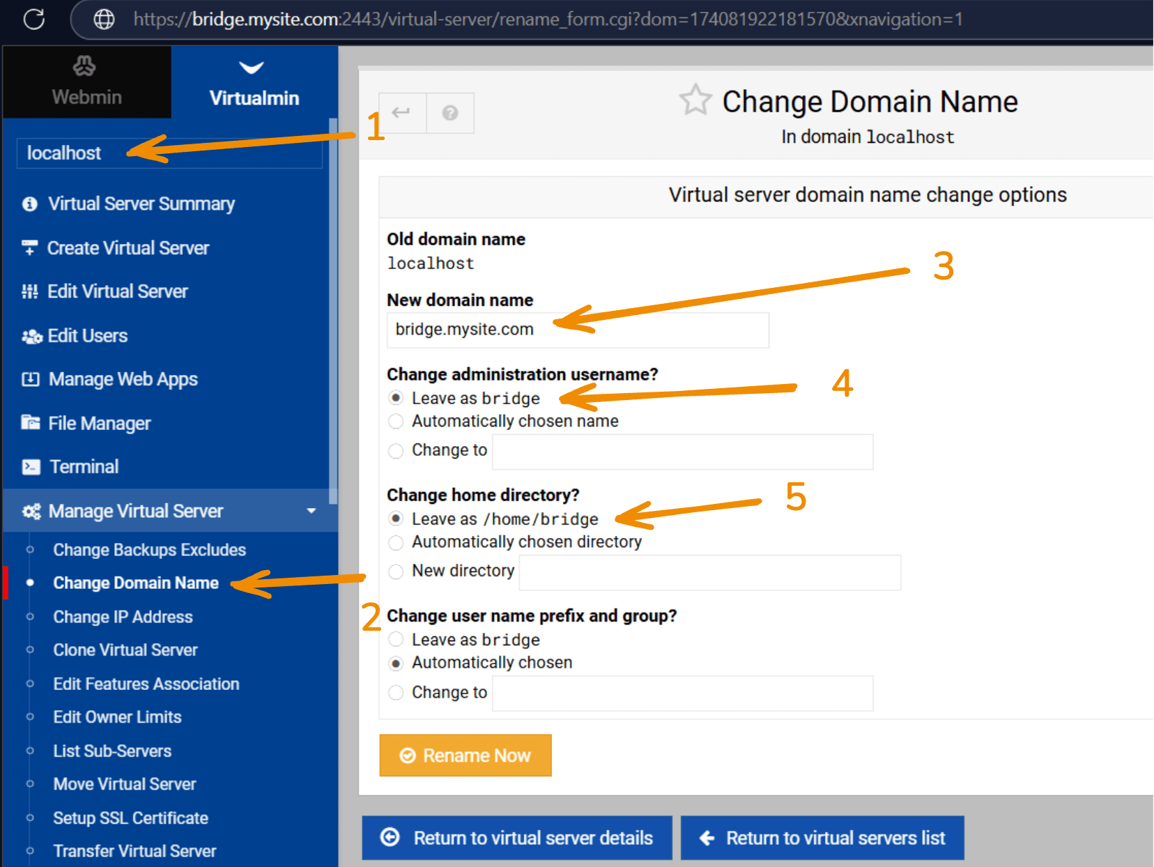 Then go to the site > Manage Virtual Server > Change Domain Name.
